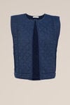 Een regular fit gilet van katoen met gestikt dessin, schouderdetail voor extra vorm en een ronde hals. Stoere look.