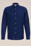 Een slim fit overhemd van een linnenmix met knoopsluiting. Het model heeft een mao-kraag en lange mouwen.