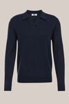 Upgrade je garderobe. Deze polo met lange mouwen heeft een klassieke kraag, V-hals en ribboorden. Stijlvol, comfortabel en altijd een goede keuze.