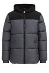 Een regular fit jas van een waterafstotende kwaliteit met colourblock, een ritssluiting en twee steekzakken met drukknoopsluiting. Het model heeft een capuchon en lange mouwen. De jas heeft een binnenzak.