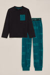 Zacht en comfortabel voor een goede nachtrust. Deze pyjama van katoenmix heeft een shirt met ronde hals en lange mouwen, en een broek met elastische tailleband. Met deze comfy pyjama is naar bed gaan nooit meer een strijd.