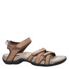 Teva Tirra Leather dames sandaal. Teva staat al jaren bekend om zijn outdoor sandalen. Met deze sandalen kun je dus lekker de buitenlucht in! De dunne bandjes zijn gemaakt van nubuckleer en zijn te verstellen met klittenband voor een betere pasvorm. Het anatomische gevormde EVA-voetbed zorgt voor de perfecte pasvorm en ondersteuning tijdens de lange wandeling. De ShocPad onder de hiel heeft een goede schokabsorberende werking waardoor je de hele dag van optimale demping geniet.