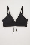Een nauwsluitende bikinitop van zwemstof met een structuur en kraaldetail. Het model heeft een striksluiting en verstelbare spaghettibandjes.