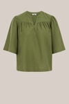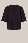 Simpel hoeft niet saai te zijn. Deze top heeft een regular fit, V-hals, korte mouwen en plooidetails bij mouwen, voor- en achterpand. Een fijne basis wanneer je liever je kostbare tijd besteedt aan je agenda dan aan je outfit.