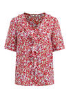 Een regular fit blouse van geweven kwaliteit met ruches. Het model heeft een V-hals, korte mouwen en een knoopsluiting.