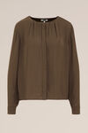 Ontdek het gemak van moeiteloze elegantie. Deze regular fit blouse van geweven kwaliteit heeft een glanzende satijnen look, blinde knoopsluiting en lange mouwen. Een ronde hals en plooidetails maken het item helemaal af.