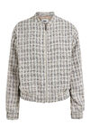 Een loose fit bomber van grof geweven kwaliteit met een dessin en structuur. Het model heeft een ronde hals, een ritssluiting, lange mouwen en twee steekzakken. Gevoerd.