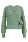Een regular fit vest van een wolmix met striksluiting. Het model heeft een overslaghals en lange mouwen.
