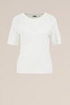 Zit comfy, maar doet nét iets meer dan een basic. Deze gebreide trui heeft een regular fit, korte mouwen en een ronde hals. Het opengewerkte dessin op de hals en rug in V-vorm zorgt voor een elegante verrassing van achteren.