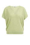 Een regular fit trui van gebreide kwaliteit met een opengewerkt dessin en glittergaren. Het model heeft een V-hals en korte mouwen.