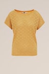 Upgrade je wardrobe met dit veelzijdige item. Deze gebreide regular fit trui heeft een opvallende opengewerkte structuur, en is goed af te stijlen voor meer casual of chique looks. Het heeft een ronde hals met korte mouwen, en valt extra op door het gebruik van glittergaren.