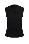 Een nauwsluitende top van een modalmix met een gedrappeerde hals.