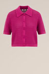 Vul je (zomer)garderobe aan. Dit gehaakte vest met polokraag en knoopsluiting is het ideale item om je outfit af te maken. Korte mouwen en de luchtigheid van de stof maken het item perfect voor warmer weer.