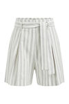 Een short van een viscose- en linnenmix met een gestreept dessin, een haak-, rits- en knoopsluiting en een afneembare ceintuur. Het model heeft steekzakken, een hoge taille en losvallende pijpen.