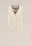 Een getailleerd gilet van geweven kwaliteit met twee paspelzakken en een knoopsluiting. Het model heeft V-hals.