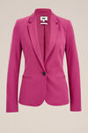 Een getailleerde blazer van een viscose mix met een knooplsuiting en twee paspelzakken. Het model heeft een normale kraag en lange mouwen.