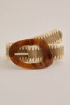 Maak je outfit compleet. Deze stevige riem met stretch in natuurlijke lichtbruine en beige tinten past perfect bij al je looks. De grote bruine gesp voegt een stijlvol accent toe dat direct opvalt.