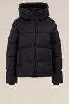 Een regular fit hippe puffer jacket van polyamide met een capuchon met aantrekkoorden, twee steekzakken met drukknoopsluiting, ritssluiting en drukknoopsluiting. Korte valt op de heupen.