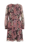 Een regular fit jurk van gerecycled polyester met dessin en elastische taille. Het model heeft een ronde hals met knoopsluiting en lange mouwen. De jurk valt op de knie.