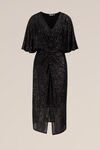 Maak altijd een maximale indruk, waar je ook gaat. Deze jurk is gemaakt van jersey kwaliteit en heeft mooie pailletten, een knoopdetail, een overslaghals, een drukknoopsluiting, een split en korte mouwen. Het item is een feestje om te zien en dragen, en verdient zeker een plek in jouw garderobe. De jurk beschikt ook over een onderjurk en valt over de knie.