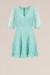 Kies voor moeiteloze stijl. Deze jurk met kant heeft een flatterende V-hals, korte pofmouwen en een ritssluiting op de rug. Een onderjurk zorgt voor extra draagcomfort, zodat jij je de hele dag goed voelt en er net zo goed uitziet.