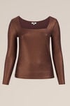 Voeg wat glans toe aan je garderobe! Deze nauwsluitende top van viscosemix met een metallic coating, vierkante halslijn en lange mouwen is ideaal voor een avondje uit. Wees het stralende middelpunt van elk feestje!