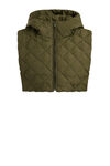 Een nekwarmer van een geweven kwaliteit met een ritssluiting, een capuchon en een gestikt dessin.