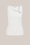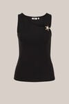 De perfecte aanvulling op jouw garderobe. Deze singlet heeft een fitted pasvorm met een aflopende ronde hals en een mouwloos silhouet. De stretch zorgt voor comfort en een mooie aansluiting. Het goudkleurige zeester-detail aan de zijkant geeft een subtiele, zomerse finish.
