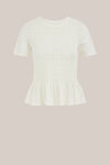 Een van onze favorieten. Dit T-shirt heeft een nauwsluitende fit met een ronde hals. Het middenstuk is volledig gesmokt, de korte mouwen zijn effen en de onderzijde loopt geplooid uit voor een subtiel speels effect.