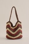 Net zo'n vrolijke verschijning als jij! Deze tas heeft twee gevlochten schouderhengsels, druksluiting, een binnenvak met rits, gevoerde binnenkant en een verharde bodem. De golvende bovenkant en rotanlook maken ’m ideaal voor zonnige dagen.