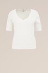 Korte mouwen, groot comfort. Deze V-hals trui van 100% katoen is perfect voor frisse dagen of om te combineren met laagjes. De ribboorden geven het net dat beetje extra, zonder teveel poespas.