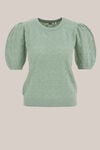 Zacht, vrouwelijk en net even anders. Deze trui met structuur heeft een regular fit, ronde hals en korte pofmouwen. De licht doorschijnende stof en het ribboord langs de hals, mouwen en onderzijde geven het item een elegante, moderne uitstraling.