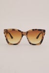 Een leukere cat-eye vinden? Maak dat de kat wijs. Deze zonnebril heeft een groot cat-eye montuur met lichtbruine-naar-gele glazen en donkerbruine spikkels op het frame. Volledig polycarbonaat met UVA/UVB-bescherming en een microfiber hoesje erbij.