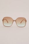 Maximale uitstraling zonder moeite. Deze zonnebril heeft een groot vierkant beige montuur van polycarbonaat met lichtbruine glazen. Biedt UVA/UVB-bescherming en komt met een microfiber hoesje. Laat de zon maar komen!