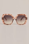 Een zonnebril van polycorbonaat met een dessin en donkere glazen.