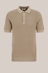 Tijdloos met een verfijnde structuur. Deze regular fit polo is fijngebreid, heeft korte mouwen, een klassieke polokraag met drieknoopssluiting en is afgewerkt met gebreide boorden aan de mouwen en onderzijde.