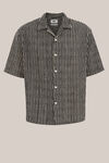 Een mix van comfort en stijl. Dit overhemd heeft een relaxed fit met een kraag, knoopsluiting en korte mouwen. De zwart-witte verticale strepen geven een frisse uitstraling. De geweven open structuur maakt de stof luchtig en comfortabel.