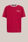 Voor een laid-back look. Dit T-shirt heeft een ruimere pasvorm met een ronde hals en korte mouwen. De witte boorden zorgen voor contrast. Een borstprint met tekst geeft het item een moderne, nonchalante uitstraling.