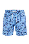 Een regular fit zwemshort van gerecycled polyester met 2 steekzakken met mesh voering, een muntzakje en een paspelzak achter met een ritssluiting. Het korte model heeft een binnenbroek van mesh en een aantrekkoord in de taille.