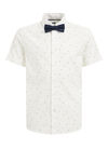 Een slim fit overhemd van katoenmix met een dessin, een borstzak en een knoopsluiting. Het model heeft een normale kraag met afneembare vlinderdas en korte mouwen.