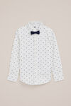 Stijlvol met een speelse twist. Dit overhemd heeft een regular fit, een klassieke kraag en een afneembare strik, met lange mouwen en een knoopsluiting. De all-over print met kleine vierkantjes geeft dit item net wat extra uitstraling.
