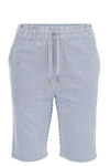Een zonnige bruiloft op het strand, tuinfeest of ander (speciaal) moment? Deze slim fit short voor kids is er perfect voor. Het item heeft een tijdloos streepdessin, twee steekzakken, paspelzakken en smalle pijpen. Een elastische taille met aantrekkoordjes garandeert een comfortabele pasvorm en maakt het aan- en uitrekken extra makkelijk.