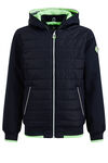 Deze gewatteerde regular fit jas heeft een capuchon met tapedetail en een fleecevoering. Het jack heeft contrasterende mouwen, een ritssluiting met kinbeschermer en twee steekzakken met drukknoop. Aan de lange mouwen zitten geribde boorden, evenals aan de elastische tailleband.