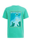 Een regular fit T-shirt van katoen met een opdruk op de voor- en achterkant. Het model heeft een ronde hals en korte mouwen.
