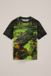 Opvallend en vol karakter. Dit T-shirt heeft een regular fit, een ronde hals, korte mouwen en is volledig bedrukt met een all-over print.