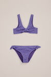 Bommetje! Deze bikini heeft een regular fit, een top met dunne bandjes, een ronde hals en een strikje middenvoor. Het broekje maakt het af met strikjes aan beide zijkanten. Perfect voor zwemles of een zonvakantie.