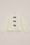 Nieuwe favoriet: gevonden. Deze blouse heeft een regular fit, een ronde hals, lange mouwen met elastische boorden en een blinde drukknoopsluiting voor, afgewerkt met lieve strikjes.