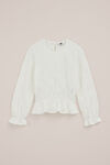 Netjes genoeg voor oma’s foto, leuk genoeg voor TikTok. Deze blouse heeft lange mouwen, een ronde hals, knoopsluiting en een elastische taille met ruffle. Zit makkelijk, beweegt soepel en verdient een ereplekje in je kledingkast.