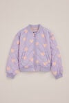 Lief en stoer in één look. Dit bomberjack heeft een regular fit, een bomberkraag en een ritssluiting, met lange mouwen met ribboord en twee zakken met drukknoop. Het stikselpatroon en de all-over hartjesprint geven de jas een speelse en vrolijke uitstraling.