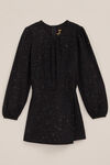 Speels en praktisch. Deze glitterende jumpsuit lijkt op een jurkje maar biedt het comfort van een broekje. Met een ronde hals en lange mouwen is het ideaal voor elke gelegenheid.